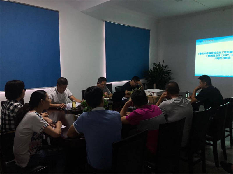8月20日,雅安交建集團(tuán)無水港物流有限責(zé)任公司執(zhí)行董事、總經(jīng)理夏炅?xí)F主持召開工資總額管理試行辦法專題學(xué)習(xí)會(huì),會(huì)議傳達(dá)了市交建集團(tuán)工資總額管理推進(jìn)會(huì)會(huì)議精神,專題學(xué)習(xí)解讀了《雅安市市屬監(jiān)管企業(yè)工資總額管理試行辦法》。公司干部職工共計(jì)20余人參加。