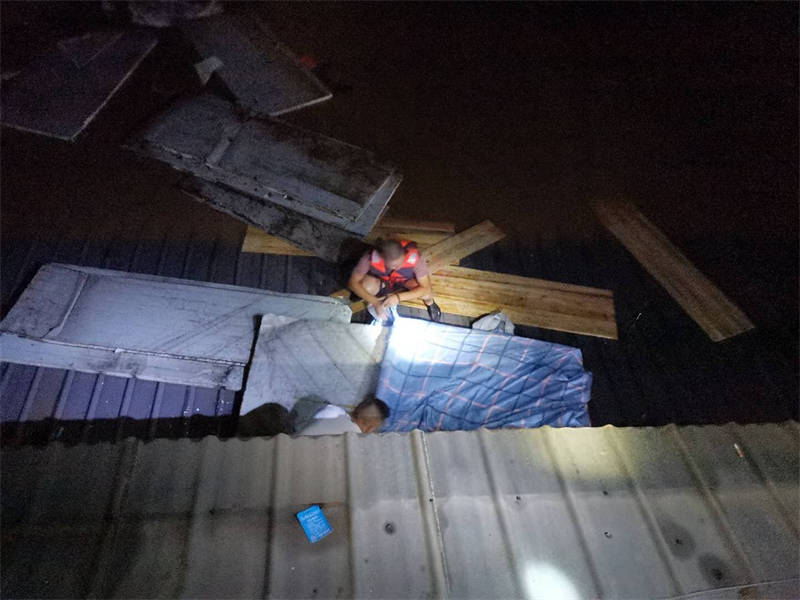 “感謝3名值班人員及時打電話通知我,否則后果不堪設(shè)想!焙喚纯f,回想起昨晚的情形,心里還是有些后怕。當時,他接到值班人員電話后,發(fā)現(xiàn)門衛(wèi)室外的洪水已經(jīng)逼近脖子,無法順利撤離,洪水漲勢又快,不一會兒,他只得爬上門衛(wèi)室頂端才能避免被水淹沒。后來,洪水沖來了一棵樹,簡敬奎借助這棵樹慢慢轉(zhuǎn)移到了附近一棵較高大的樹上繼續(xù)躲避,直至黃志和方華軍前來營救。