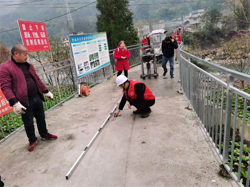 為深入推進(jìn)黨史學(xué)習(xí)教育“我為群眾辦實(shí)事”實(shí)踐活動,11月26日,交建集團(tuán)佳岳公司組織4名檢測人員對天全縣小河鄉(xiāng)境內(nèi)2條農(nóng)村公路,1座鐵索橋開展混凝土路面厚度、橋墩加固強(qiáng)度等檢測,全面把控道路質(zhì)量,提高群眾通行安全保障。