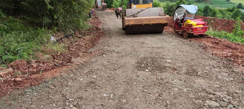 在路橋公司承接的“世界銀行貸款蘆山地震災后恢復重建天全縣始陽至新華農村公路”項目天全縣新華鄉(xiāng)柏樹村至永安村段,其村道路面結構層差,路基窄,雨水多,晴通雨阻,對本地農產(chǎn)品外運造成很大困擾,嚴重影響了民眾的生產(chǎn)生活。為積極響應市委市政府加快雅安市“四好農村路”的部署安排,解決當?shù)卮迕癯鲂须y、本土農產(chǎn)品外銷滯后等問題,路橋公司天全項目部主動作為,在推進項目部主體建設的同時,堅持以問題為導向,采用“始新路”施工現(xiàn)場自拌水穩(wěn)料,為村民鋪設了一段長臨時水穩(wěn)路面,方便廣大村民順利出行,促進當?shù)剞r產(chǎn)品物資交流。