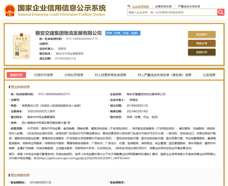 3月14日,經(jīng)市場(chǎng)監(jiān)督管理部門核定,雅安交建集團(tuán)無水港物流有限責(zé)任公司正式變更為雅安交建集團(tuán)物流發(fā)展有限公司,標(biāo)志著公司改革發(fā)展邁出新的步伐。