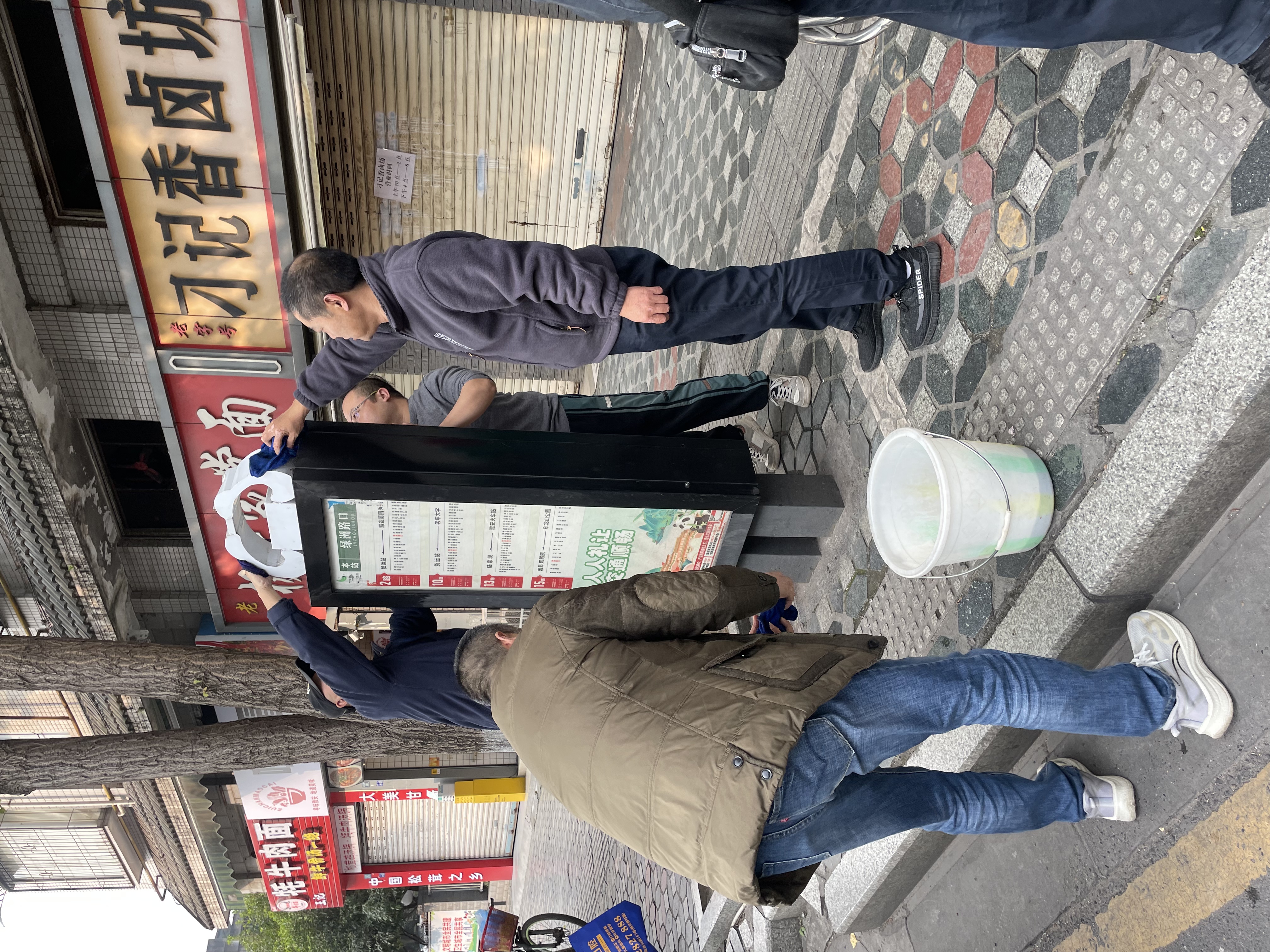 活動(dòng)當(dāng)天,黨員們手持抹布、水桶等清潔工具,兵分多路奔赴各個(gè)公交站點(diǎn)。大家不怕臟、不怕累,認(rèn)真細(xì)致地清理站牌,有的踮起腳尖、伸長手臂,用抹布仔細(xì)擦拭站牌的櫥窗玻璃;有的提著水桶,清洗傳遞抹布,打好“下手”;還有的手持鏟刀,認(rèn)真刮去站牌上的“牛皮癬”廣告。