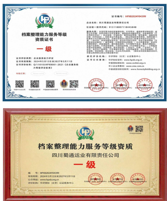 該證書的獲得,不僅提升了公司的品牌形象和市場競爭力,也為公司未來的發(fā)展奠定了堅實的基礎(chǔ),是蜀通公司發(fā)展歷程中的一項重要里程碑。蜀通公司將以此為契機,不斷提升自身實力和服務(wù)水平,為客戶提供更加專業(yè)、優(yōu)質(zhì)的檔案整理服務(wù)。