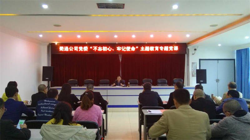 10月24日,公司黨委“不忘初心、牢記使命”主題教育專題黨課在蜀通公司機(jī)關(guān)大會議室舉行,公司黨委書記吳誠向蜀通公司、公交公司黨員講專題黨課。公司黨支部書記、和黨員代表共35人參加。