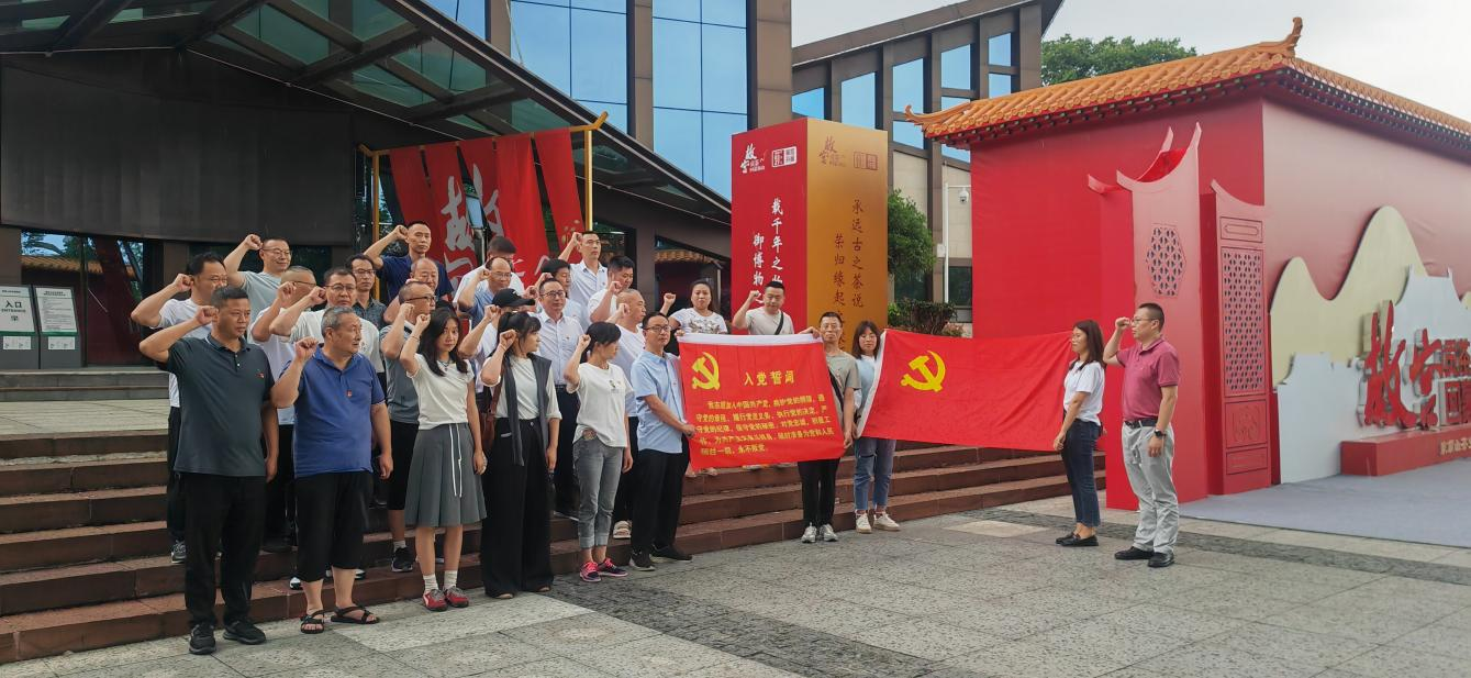 活動現(xiàn)場,曲樂清悅,氛圍熱烈,館內(nèi)陳列著與蒙頂山茶有關的歷史文獻和實物資料,以“天下蒙茶”為基本陳列,再現(xiàn)了蒙頂山茶的發(fā)展歷史。古有“齊武帝與茶”,解說員深入淺出地講解了茶文化中蘊含的廉潔哲理。通過現(xiàn)場講解,弘揚了中國傳統(tǒng)茶文化中“精行儉德” “廉、美、和、敬”的精神。參觀結(jié)束后,全體人員在古色茶香又不失莊嚴的博物館前,鏗鏘有力地重溫入黨誓詞。