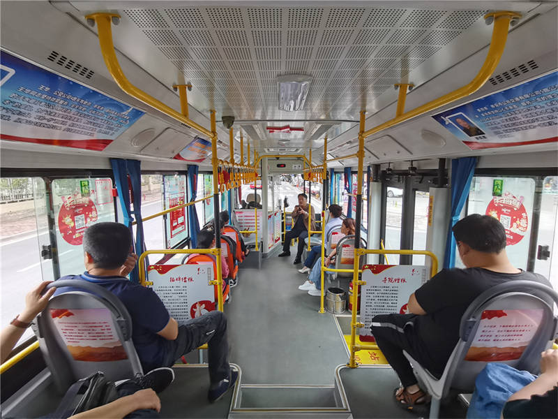 13路公交線路連接雨城區(qū)東西方向,客流量充足,群眾覆蓋范圍廣。雅安交建集團(tuán)依托車頭、車廂文化,通過圖片、展板等形式,圖文并茂、簡明扼要介紹“五四”精神、“紅船精神”、“井岡山精神”、“強(qiáng)渡大渡河”、“飛奪瀘定橋”、“翻越夾金山”、“延安精神”等紅色主題,成為一道流動的文明風(fēng)景線。乘坐在13路“紅色公交”車上,乘客可了解黨的光輝故事,重溫中國共產(chǎn)黨波瀾壯闊的輝煌歷程,更多的參與到黨史學(xué)習(xí)教育中來,在乘車的短暫時光中學(xué)有所得、學(xué)有所思、學(xué)有所悟。