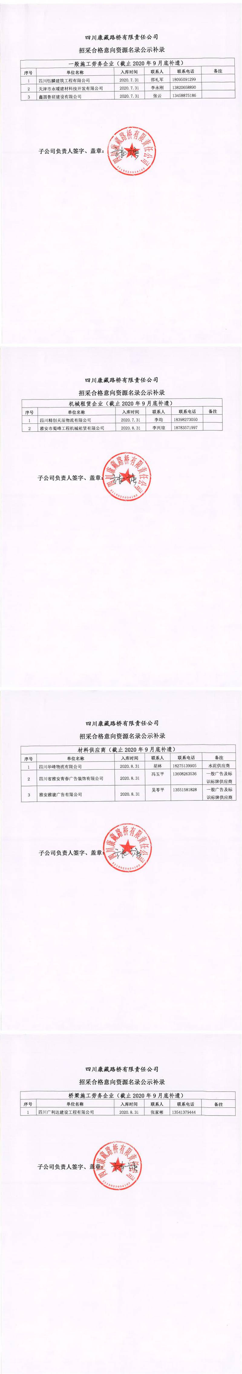 四川康藏路橋有限責任公司招采合格意向資源名錄公示補錄