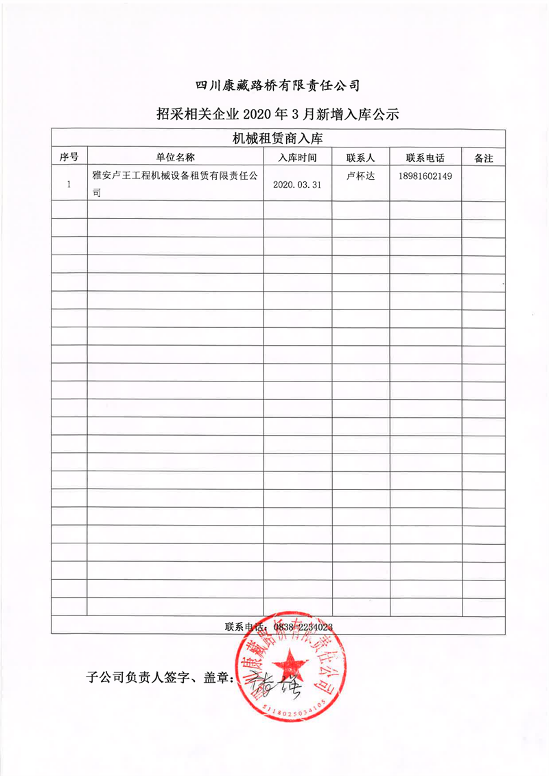 四川康藏路橋有限責任公司招采相關企業(yè)2020年3月新增入庫公示