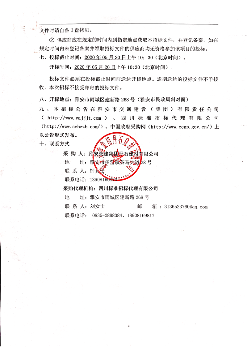 雅安交建集團(tuán)丹石建材有限公司天全縣魚泉獅子山礦山開采及加工礦區(qū)、廠區(qū)挖運(yùn)服務(wù)項(xiàng)目公開招標(biāo)結(jié)果公示