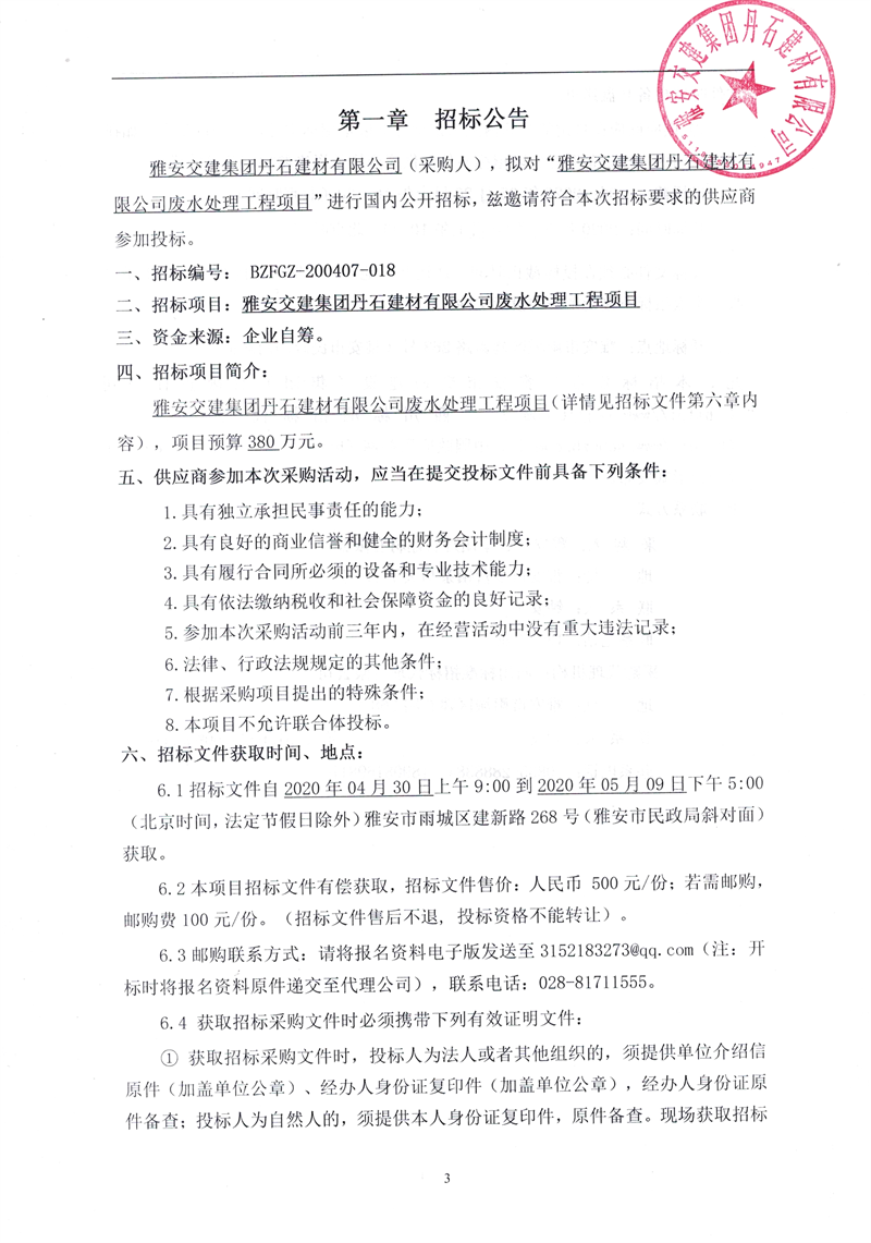 雅安交建集團(tuán)丹石建材有限公司廢水處理工程項(xiàng)目招標(biāo)公告