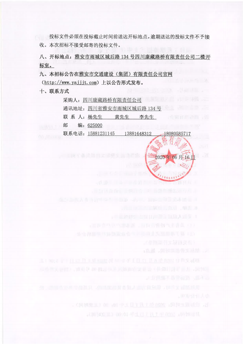 四川康藏路橋有限責(zé)任公司寶興分公司省道432線雅安段擴建工程K19新建拌合站施工勞務(wù)磋商公告(第二次)