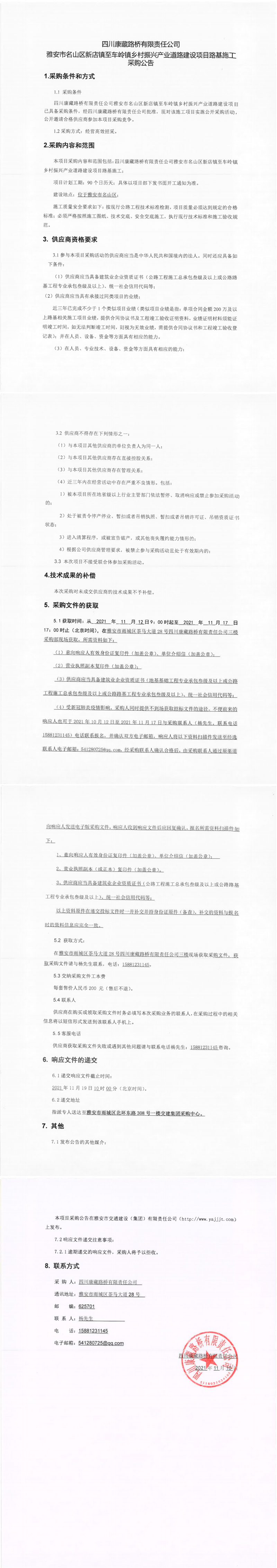 四川康藏路橋有限責(zé)任公司雅安市名山區(qū)新店鎮(zhèn)至車嶺鎮(zhèn)鄉(xiāng)村振興產(chǎn)業(yè)道路建設(shè)項(xiàng)目路基施工采購公告