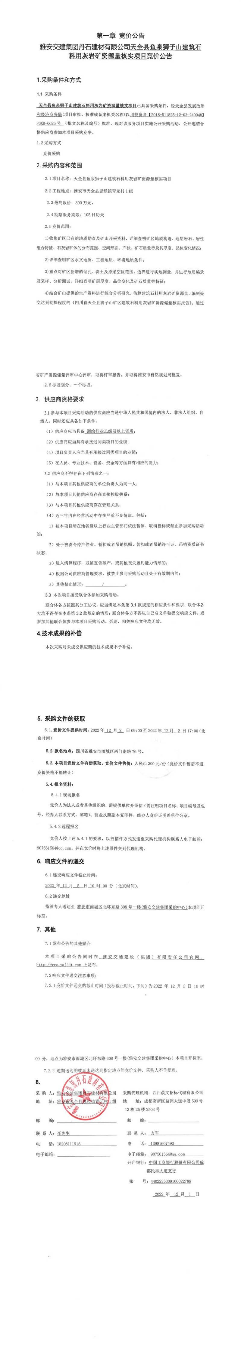 雅安交建集團(tuán)丹石建材有限公司天全縣魚泉獅子山建筑石料用灰?guī)r礦資源量核實(shí)項(xiàng)目競價(jià)公告