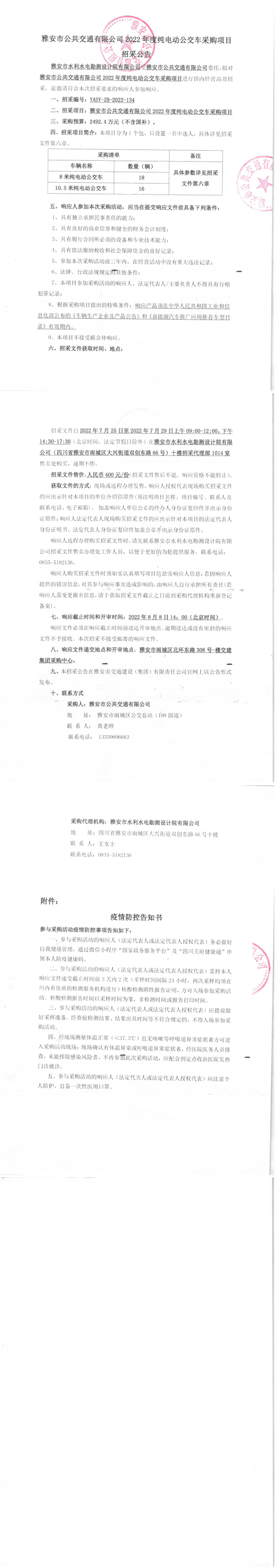 雅安市公共交通有限公司2022年度純電動(dòng)公交車采購項(xiàng)目招采公告