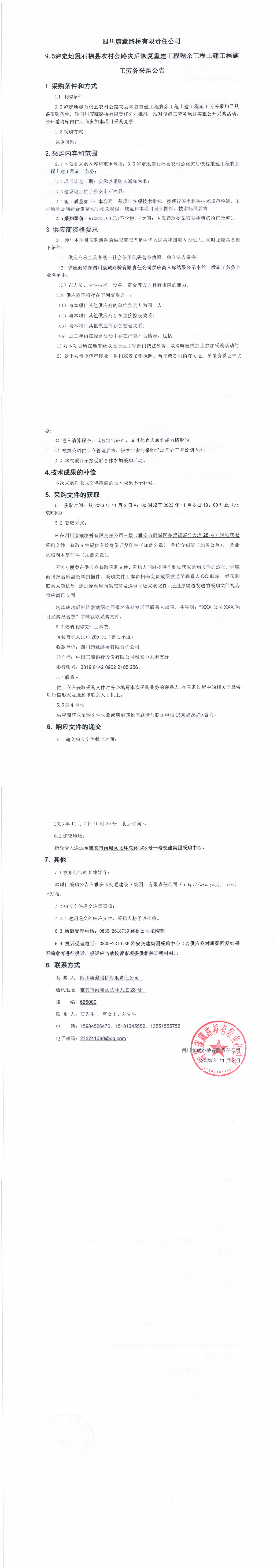 四川康藏路橋有限責(zé)任公司 9.5瀘定地震石棉縣農(nóng)村公路災(zāi)后恢復(fù)重建工程剩余工程土建工程施工勞務(wù)采購(gòu)公告