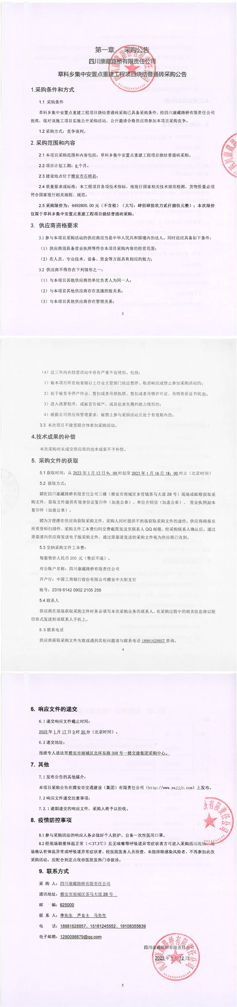 四川康藏路橋有限責任公司石棉草科鄉(xiāng)集中安置點重建工程項目燒結(jié)普通磚采購公告