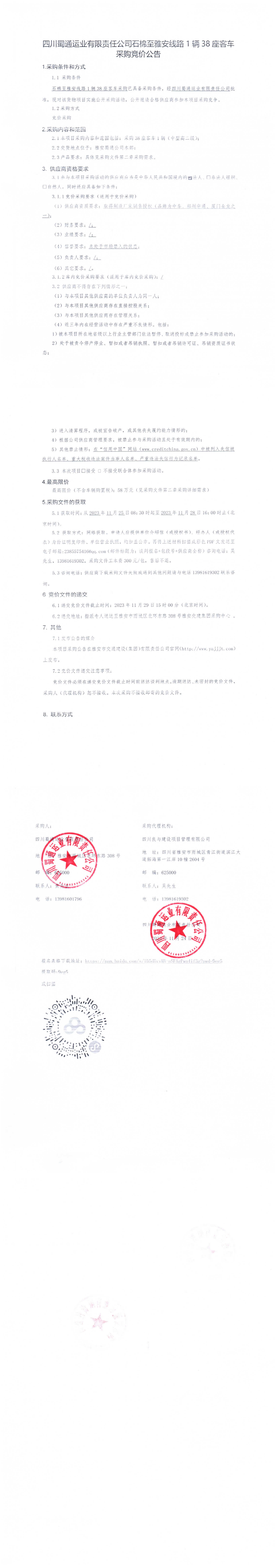 四川蜀通運(yùn)業(yè)有限責(zé)任公司石棉縣至雅安線路1輛38座客車采購競(jìng)價(jià)公告