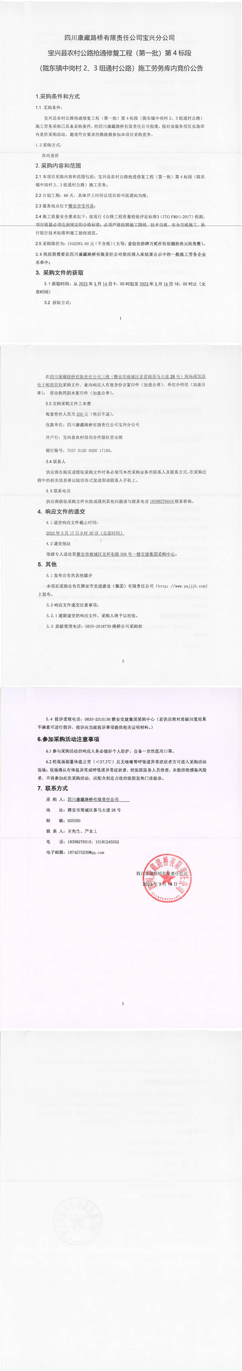 四川康藏路橋有限責(zé)任公司寶興分公司寶興縣農(nóng)村公路搶通修復(fù)工程(第一批)第4標(biāo)段(隴東鎮(zhèn)中崗村2、3組通村公路)施工勞務(wù)庫內(nèi)競(jìng)價(jià)公告