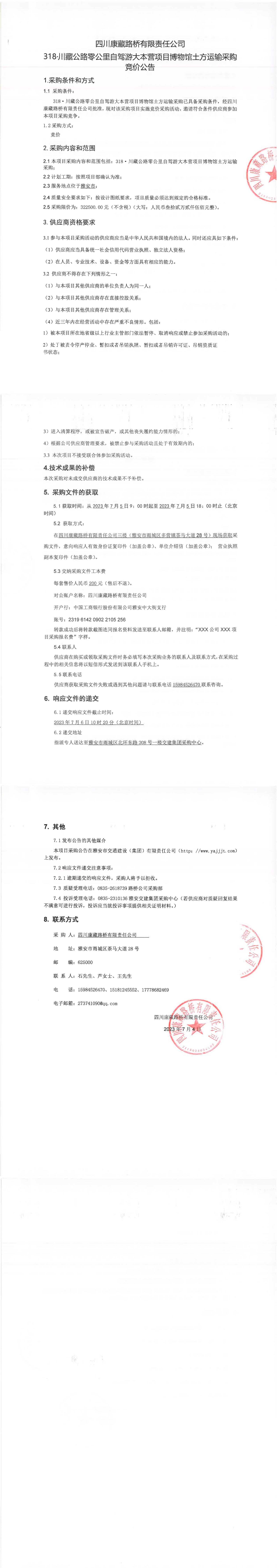 四川康藏路橋有限責任公司318·川藏公路零公里自駕游大本營項目博物館土方運輸采購競價公告