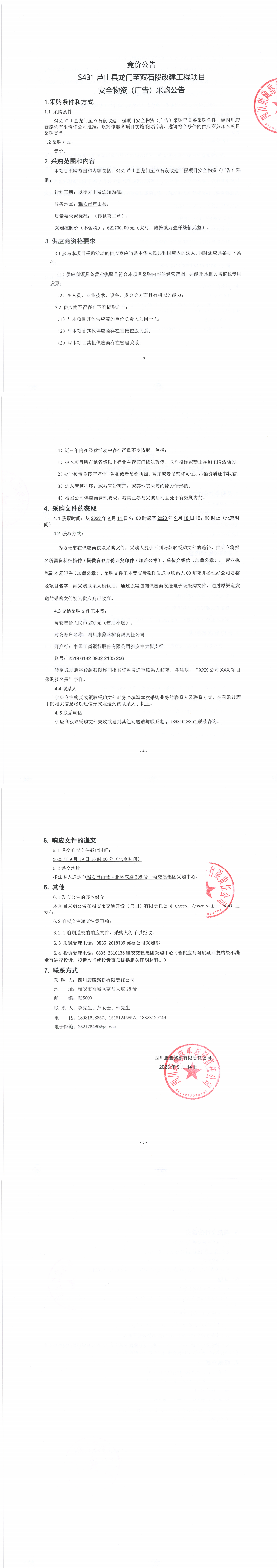四川康藏路橋有限責(zé)任公司S431蘆山縣龍門至雙石段改建工程項(xiàng)目安全物資(廣告)采購(gòu)公告