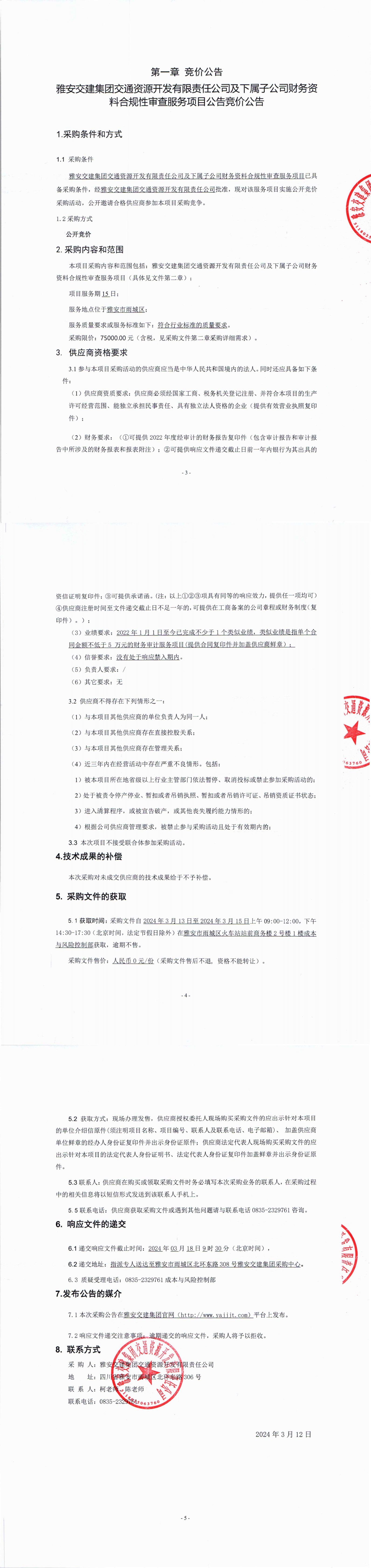 雅安交建集團交通資源開發(fā)有限責任公司及下屬子公司財務(wù)資料合規(guī)性審查服務(wù)項目公告競價公告