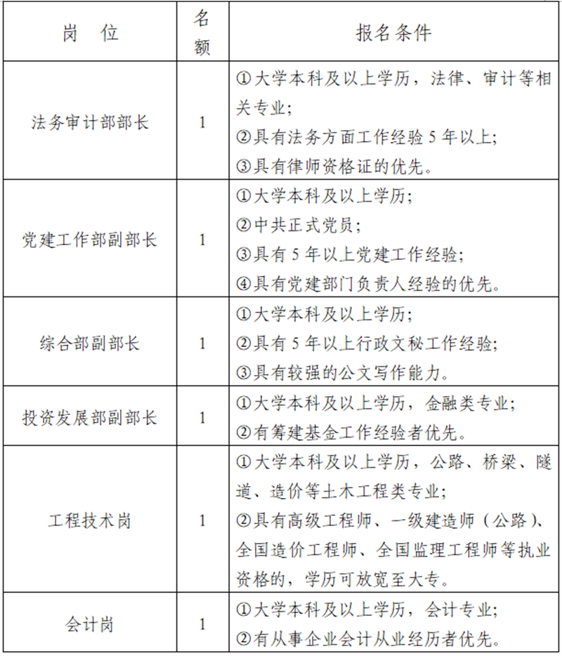 雅安市交建集團是市屬重點國有企業(yè),主要從事交通基礎設施及配套服務設施的投資、建設、經營和交通資源的開發(fā)利用等業(yè)務。根據(jù)公司發(fā)展需要,決定面向社會公開招聘6名工作人員,現(xiàn)將有關事項公告如下: