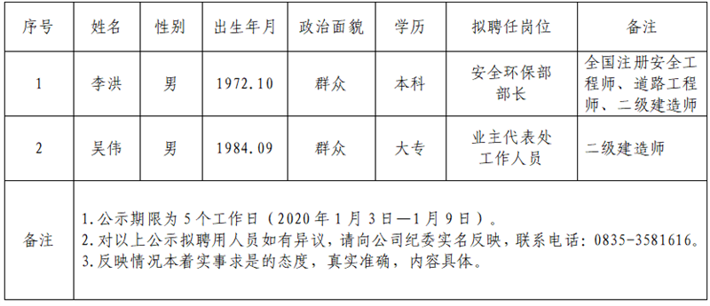 雅安交建集團(tuán)項目管理有限公司擬聘用人員公示