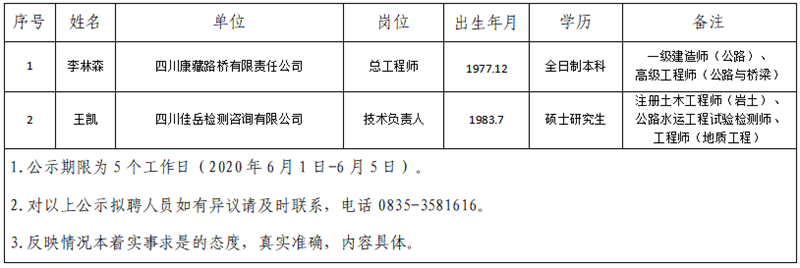 根據(jù)雅安市交通建設(shè)(集團)有限責(zé)任公司人才引進方案,經(jīng)集團研究,現(xiàn)將以下擬聘用人員予以公示:
