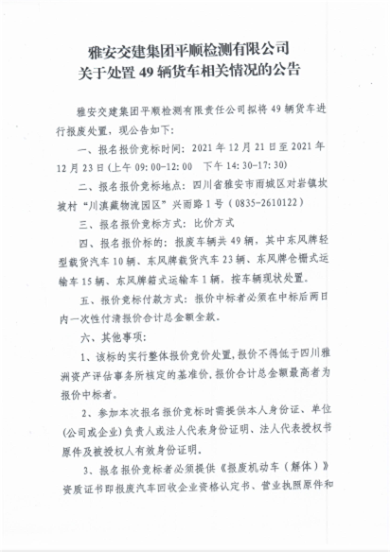 ÑŰ²½»½¨¼¯ˆF(tu¨¢n)ƽ혙zœy(c¨¨)ÓÐÏÞ¹«Ë¾ êP(gu¨¡n)ÓÚÌŽÖÃ49Ýv؛܇ÏàêP(gu¨¡n)Çé›rµÄ¹«¸æ