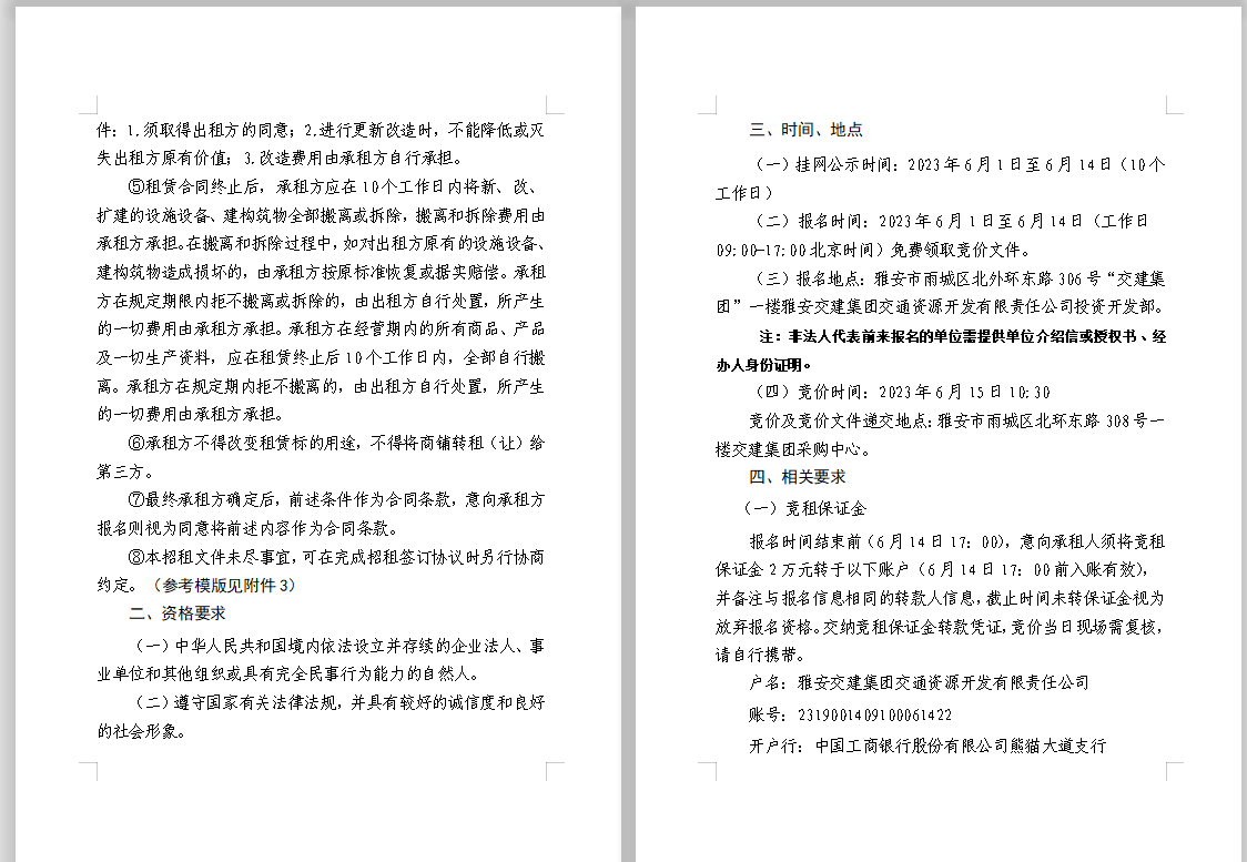 交通資源開發(fā)公司雨名快速通道(名山服務區(qū))2、3號樓商鋪招租公告附件