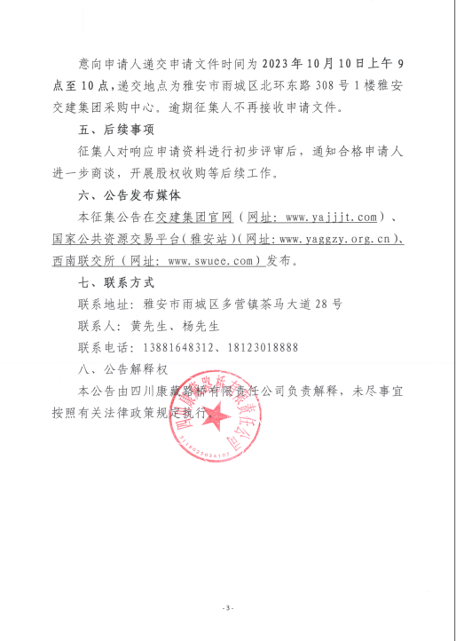四川康藏路橋有限責任公司關于股權收購隧道工程施工企業(yè)征集公告(第二次)