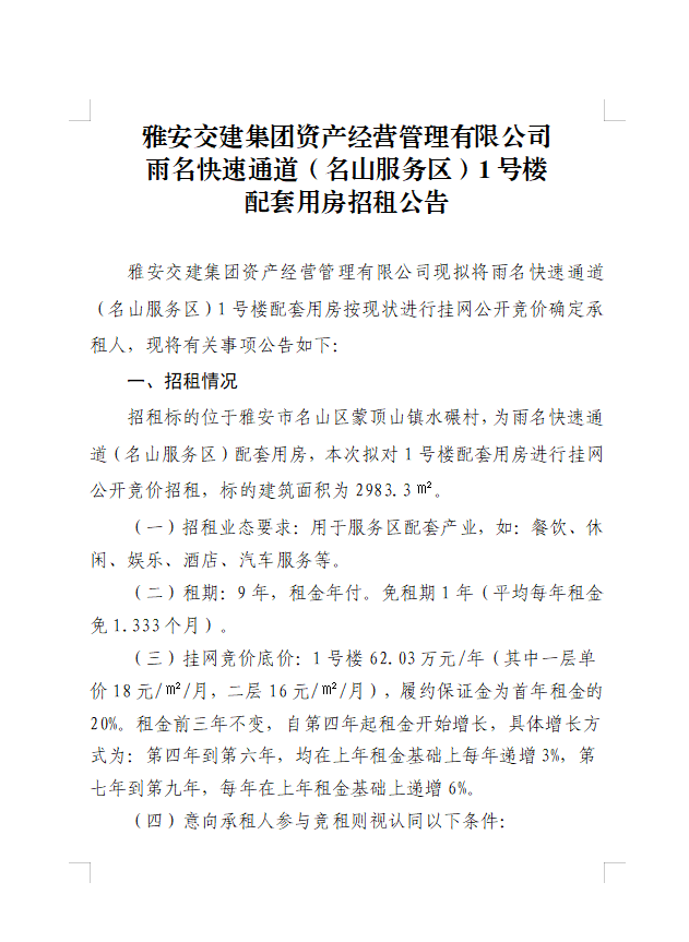 ÑŰ²½»½¨¼¯ˆF(tu¨¢n)ÙY®a(ch¨£n)½›(j¨©ng) I(y¨ªng)¹ÜÀíÓÐÏÞ¹«Ë¾ÓêÃû¿ìËÙͨµÀ£¨Ãûɽ·þ„Õ(w¨´)…^(q¨±)£©1Ì–(h¨¤o)˜ÇÅäÌ×Ó÷¿ÕÐ×⹫¸æ