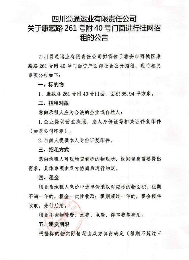 ËÄ´¨Êñͨß\˜I(y¨¨)ÓÐÏÞØŸÈι«Ë¾ êPÓÚ¿µ²ØÂ·261Ì–¸½40Ì–éTÃæßMÐÐ’ì¾W(w¨£ng)ÕÐ×âµÄ¹«¸æ